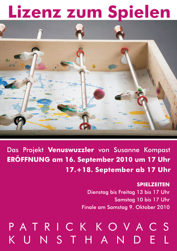 Der Venuswuzzler ist ein Tischfussball der besonderen Art. Die Spielerfiguren sind Venusfigurinnen. Wenn er bespielt wird, entsteht ein Bild, das die Spuren des gespielten Balles aufzeichnet. In dem Sinn wird das Spiel auch protokolliert. Durch das Spiel mit den Porzellanfigurinnen entsteht ein Protokollbild des Matches, das durch die Dynamik des Balles, der als Malmedium fungiert, eine gestische Qualität aufweist. Die aus dem Spiel entstehenden Werke werden durch Signatur und Nummerierung autorisiert.