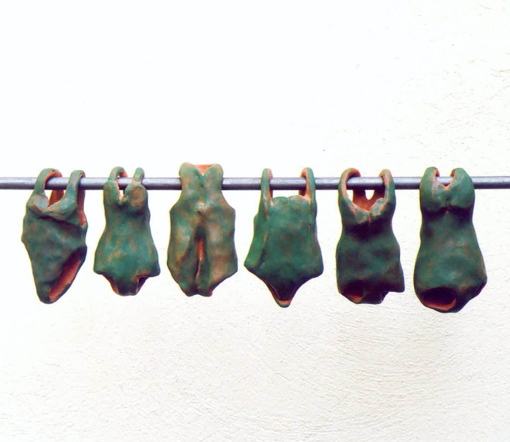 Eine andere Herangehensweise der Künstlerin ist das Formen eines Prototyps in Ton, den sie mit der Technik des Giessens vervielfältigt.